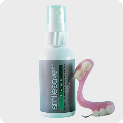 - Independent lab tests prove Smilesaver® also eliminates 99.9% of Candida albicans in 30 seconds, making it ideal for denture wearers.